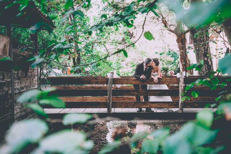 In questo caso infatti abbiamo approfittato di questo ponticello in legno ed il risultato è davvero molto romantico. Gli sposi si trovano in un’atmosfera magica con il loro riflesso sul piccolo ruscello e le foglie che li incorniciano proprio come se questa fotografia fosse un quadro.